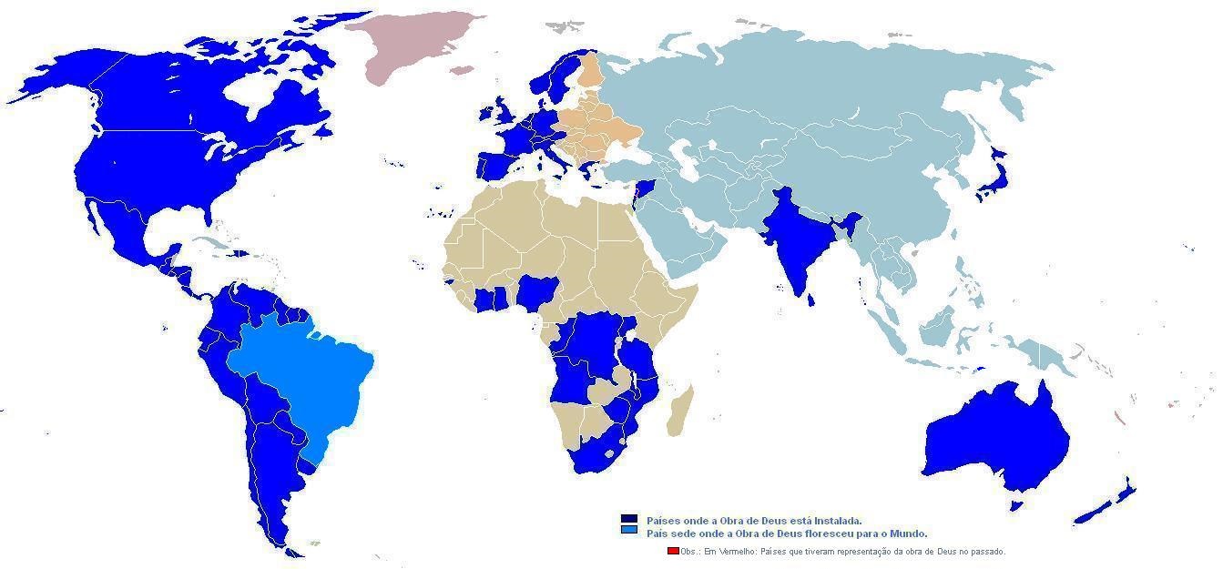 Países onde a Obra de Deus está instalada. |